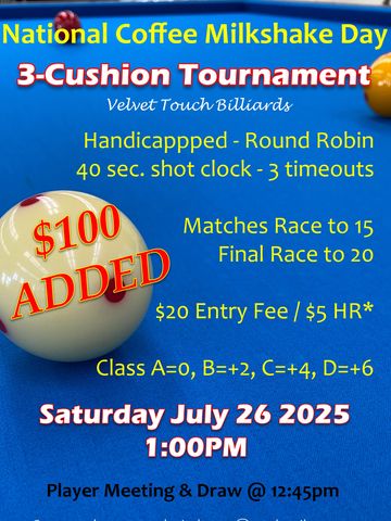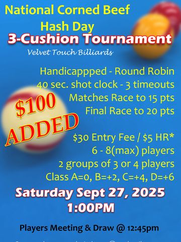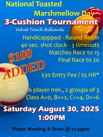 6 Player, 2 groups, round-robin, best of 25 innings. Continue here...